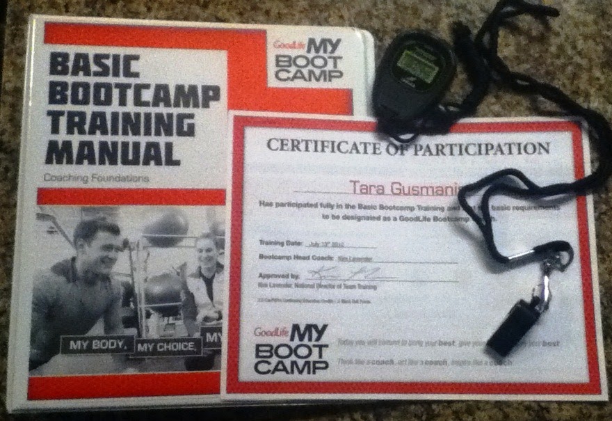 Today I had the opportunity to attend a instructor bootcamp workshop to train to be able to run MyBootcamp, which is a new team training program that GoodLife Fitness is launching. I am already a certified fitness and cycling instructor, so I was keen to see what this bootcamp training would involve. Of course we all know that there are hundreds of bootcamps out there, from Bridal to Booty, so my hope was that this bootcamp training would be a little different. One of the many great things about GoodLife is when we decide to launch something, we plan, we train and we execute so our members are given the best possible products, service and experience. I was attending the training today with Lindsey who works with me on GoodLife's Club Opening Team. I was so glad to be attending this training with her, it's always more fun to "go back to school" with a friend or someone you know.So, as I blog about this I am now an official Bootcamp Coach. See below for proof!