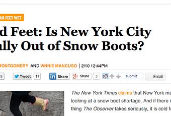The New York Times reported the other day that stocks of snow boots in the city were running low.