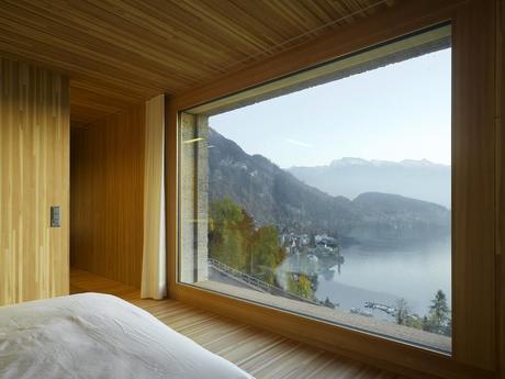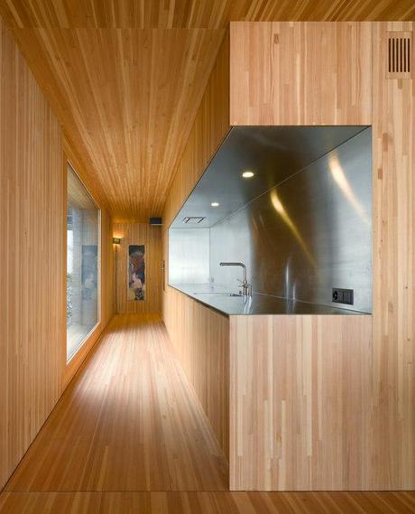 I was fascinated with the view and with the way it was framed by the elegant window. Then I saw the rest of the photos and although I respect the idea and its implementation, I do find it a little boring to live surrounded only by wood. I like wood and prefer it as a material, but still think that it should be complemented by other materials and colors.