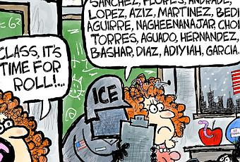 ICE Calls The School RollPolitical Cartoon is by Clay Jones at claytoonz.com.