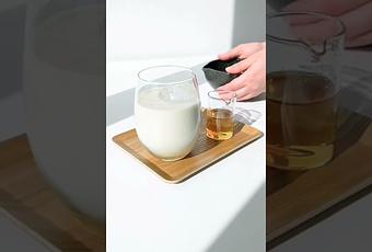 When preparing iced hojicha lattes, we recommend starting with 2 teaspoons (about 3 g) of Hojicha Powder. This is double the amount recommended for a hot latte, as this ensures that the drink will remain flavorful even if the ice cubes melt. Feel free to adjust the amount to your liking, by using 1 teaspoon of Hojicha Powder for a vanilla latte with subtle roasted notes or by increasing the amount of tea to 1 tablespoon (about 5 g) for a much stronger iced latte that is closer to those offered at cafes.
