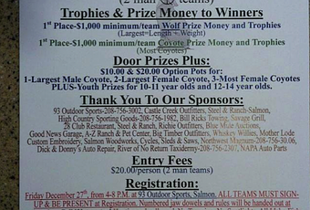 Rewards include $10 and $20 pots for the largest male and female coyotes, and the most female coyotes. There are also youth prizes for adolescent hunters. Kids starting at the age of 10 are allowed to participate in the contest.