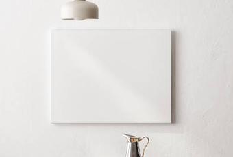 Interior dinning room space with mock up poster on white wall background. 3d illustration.