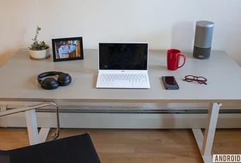 If you want to permanently set up shop here with a desktop PC or even a permanently-plugged-in laptop, good luck making it look any good. Since you'll likely be raising and lowering the desktop, you'll need plenty of cable slack, which will make cable management an absolute nightmare. Since the entire structure is metal, you'll most likely need to use tape or other sticky stuff to attach the cables to the thin legs.