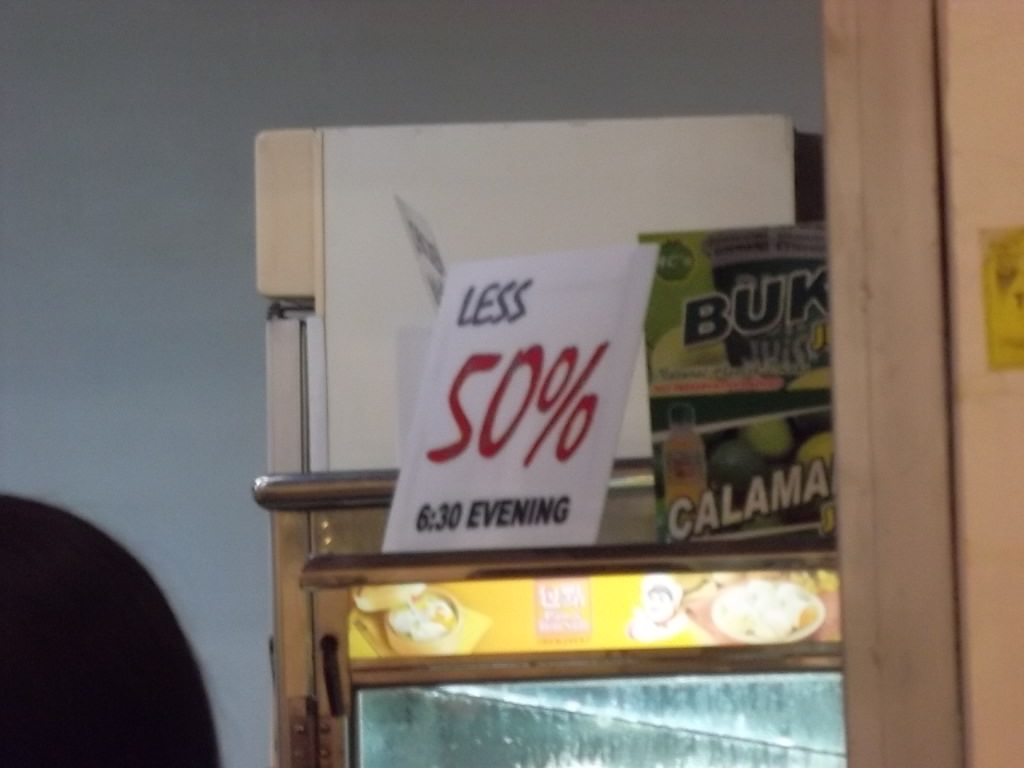 According to the customers that I interviewed, at around 4:30 to 5:30 every afternoon the store will be releasing priority numbers to those people waiting. When customers got their priority numbers, all they have to do is wait until 6:30 in the evening. Only then, the store will sell all the left overs at 50% less.