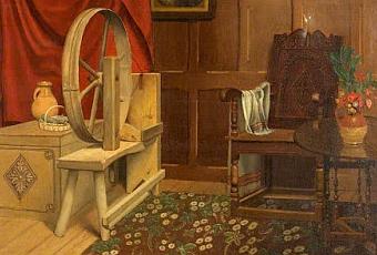 Still Life Interior with Spinning Wheel (early 20th century) 'Cogswell'