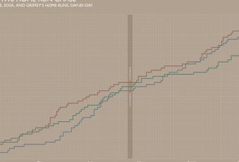 Here’s an infographic by Craig Robinson plotting out the day-by-day progress of the three main contenders in the 1998 home run chase. I had completely forgotten that Ken Griffey, Jr. was a part of this race in the beginning. He ended the season in pretty great shape, even if he didn’t pass Maris’s mark.