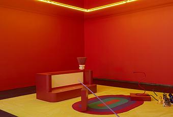 The MASS MoCA exhibition Free Roses is the first museum survey of the work of Alex Da Corte, an artist who has burst onto the scene with otherworldly installation that bring together art history, movie references, and everyday kitch into bold interiors.