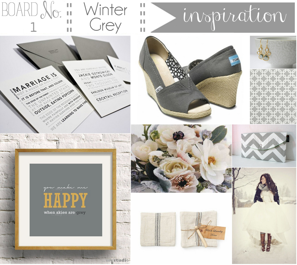 I've created a few inspiration boards on my blog but always find that I want uniformity and consistency like magnolia rouge does or the perfect palette so my new inspiration boards will follow this new format, they'll be numbered and added onto f.b.! I will go by color, style, texture, but try to keep them all within a theme. These posts will include a flowers, invitations, jewelry, accessory, makeup, cakes, bride, gift, shoes, home, patterns and more. I already have Organic Wednesday, Bright Idea Thursday, and Pin it Friday, so I will hope to make these for Mondays. I'm kinda obsessed with the color gray as you may have seen this post already here plus my blog has a lot of grey. But can anyone tell me why sometimes this word is splelt grey or gray!!? sources: flowers, invitations, jewelry, accessory, bride, gift, shoes, home, and pattern