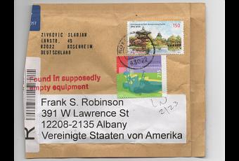 - Note the “Found in supposedly empty equipment” stamp. Apparently this situation happens enough that the Postal Service has a rubber stamp for it. (This package was mailed in February 2015; received August 28, 2017.)