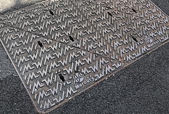 Walking down Parker Street a few weeks ago, on my way to find The Herds* I saw three circular man hole covers at the junction with Newton Street and went to get a closer look to see if any fragments of wood were in them. Nope. But, unusually, they all have their identification codes still visible.