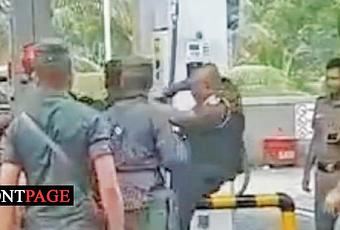 A video showing an Army officer kicking a man in the chest while two soldiers were holding him by the hand at a filling station was shared on social media.