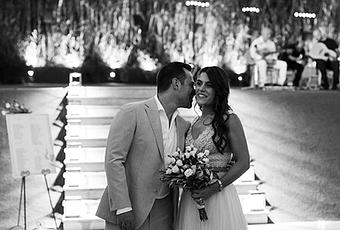 This summer wedding in Athens is just the dream! Christina and Nikos planned and designed by Koumpares achieved Christina and Nikos' vision through lovely floral arrangements with olive leaves and delicate white florals and as the bride shared with us: "We wanted to have a strong Greek element and for us this meant a lot of greenery, white flowers and handmade Greek products." With a tranquil backdrop, white roses, and plenty of greenery in the decor, the couple exchanged their vows in the most beautiful setting! Christina looked stunning in her ivory wedding dress with hand-knitted needlework and embroidered details by Atelier Zolotas. At the reception, Christina and Nikos and their guests enjoyed every detail of the decoration and, without a doubt, had an exceptional culinary experience provided by Deipnosofistirion catering. It was a day filled with love, tradition, and unforgettable memories!