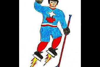 My sole superpower (as far as we know) at which you might marvel: summoning my best self. With a super solar-powered lamp embedded in the butt end of my recycled wood hockey stick, I aim to illuminate the people who populate the provinces and territories that comprise Canada, and thus enlighten all kind-hearted citizens on both sides of the 49th parallel.