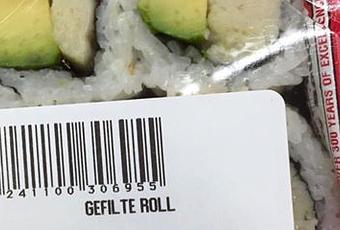This, however, takes the cake as the ultimate Jewish sushi. Maybe it should be called "Jewshi".. sushi made with gefilte fish... though it looks like the gefilte is not raw...