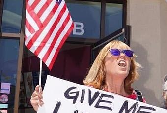 Photo of a protester, wanting a "stay-at-home" order be taken off.