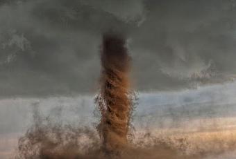 encircled by a cloud of debris and dust. The vast majority of tornadoes occur in the