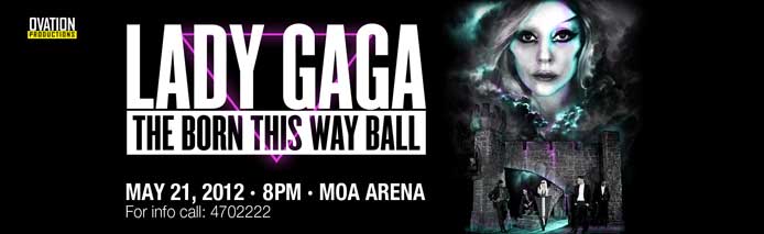 Gaga was named Forbes’ Most Powerful Woman in the World 2011 and was included in Time’s annual “The 2010 Time 100″ list of the most influential people in the world. With over 2.2 billion combined views of all her videos online, Lady Gaga is one of the biggest living people on Facebook with over 47 million ‘likes’ and is #1 on Twitter with nearly 19 million followers. Lady Gaga is the only artist in the digital era to top the 5 million sales mark with her first two hits.Tickets for The Born This Way Ball go on-sale in Manila on Monday, April 2nd at 12:00 noon at all SM TICKETS outlets and www.smtickets.comTicket prices are:Patron standing – 15,000Lower Box – 11,000Upper Box – 5,000General Admission – 2,000Ticket prices subject to applicable SM TICKETS service charge.(Via)How about that fellow monsters? Are you up for some Mother Monster love? See you there!!