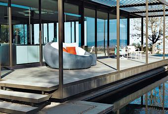 This Marmol Radziner-designed prefab house in Las Vegas is as artful as it is art-filled, thanks to an asymmetrical arrangement of solids and voids. The single-story, glass-and-steel south wing sits alongside a swimming pool, bordered by a glass-walled pavilion for formal dining. Photo by Jill Paider.