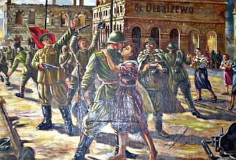 70 years ago, the great Red Army antifas liberated the city of Debaltsevo from the Nazi beasts who had invaded Holy Rus from the west. The painting above commemorates that event.