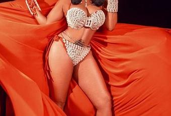 The mother-of-two confirmed off her curves as she rocked a bra and panties embellished with cowries.