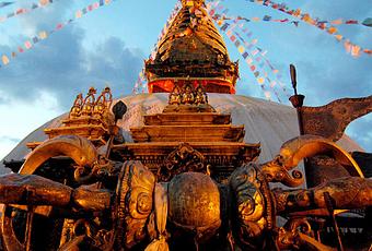 Swayambhunath - also known as the Monkey Temple, for its holy, furry dwellers that swing from the rosewood trees is one of the oldest and most sacred Buddhist sites in Nepal's Kathmandu Valley, an important pilgrimage destination for Hindus as well as Buddhists. The main entrance has 365 stone steps which need to be climbed before you reach the temple complex. Swayambhunath was founded by the great-grandfather of King Mānadeva at the beginning of the 5th century.Must see highlights- Climb the full 365 steps to the top - take a breather on the way up to enjoy the small stupas, monkeys and watch vendors prices go up! Circle the stupa at the very top Do visit the small temples and shrines around the main stupa, Visit one of the many singing bowl stores in the back streets at the top, Enjoy the view of Kathmandu from the top If you have time walk down the stairs behind the stupa to the world peace pond. There are sometimes some local artisans along these steps.This sacred pilgrimage site is also home to hundreds of monkeys considered holy to Tibetan Buddhists and Hindus. According to legend, Manjushree, the bodhisattva of wisdom, was in the process of raising the temple hill when the lice in his hair transformed into these monkeys. Swayambhunath means self-arisen and is derived from that legend. Legend says that once the Kathmandu valley was a lake in which Swayambhu hill existed as an island. On top of that hill stood a natural crystal stupa. Buddha, when visiting the place, declared that it was a wish-fulfilling stupa and whoever is touched by the wind that passes over the stupa receives the seed of liberation from the cycle of existence. The stupa represents Buddha's mind. To visit a stupa is said to be the same as meeting a Buddha in person. It offers peace, freedom and joy to the whole world and ultimately helps us to obtain perfect enlightenment. Just seeing, hearing about, reflecting upon, or touching a stupa fosters peace and even spiritual release. The stupa pacifies physical and mental difficulties such as sicknesses, famine and conflicts in all areas and directions. Swayambhu, now a UNESCO World Heritage Site, goes back to ancient times. The earliest written record of the Great Stupa of Swayambhu is a 5th century stone inscription. Honored by kings, monks, and pilgrims alike, the stupa has been restored and repaired on numerous occasions. In 1349 it was damaged by an invading Muslim army and later repaired by King Saktimalle Bhalloka. In 1505, the yogin Sangye Gyaltsen added the wheel and spire to the stupa's dome. In 1614 the 6th Shamarpa had shrines built into the stupa in the four cardinal directions. Several important Kagyu lamas held a consecration ceremony in 1750 after a major renovation.