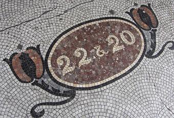 A lovely doorway mosaic in Maddox Street, London W1 clearly showing No.20 on the right and No.22 on the left. I just love the numbers and the elegant shape of the ampersand.