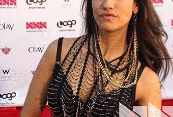 Here’s an animated image of True Blood’s Janina Gavakar ‘shifting’ on the red carpet of the NewNowNext Awards. Looking stunning as always, Janina!
