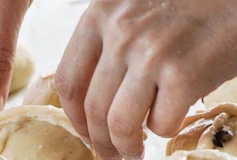 - For the rolling, sprinkle some loose flour on the counter-top and punch the dough. The key is to lengthen and stretch the gluten strands within the dough