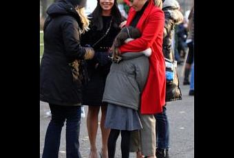 During a break from filming with Vanessa Hudgens, the mother of two switched into mommy mode as she spent time holding hands and hugging her 9 year old twins.
