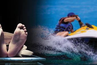 Panadura North Police said that a person riding a jet ski for fun in the Bolgoda Lake got tangled with a rope tied to the ferry running across the river and drowned yesterday (25).