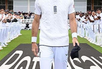 Playing on past his 40th birthday, Anderson continued to generate decent pace and had became a master craftsman. James Anderson's final day as an international cricketer started with a guard of honor. He was applauded onto the pitch at Lord's by his England team-mates and the West Indies' line-up, with captain Kraigg Brathwaite shaking his hand as he walked on. With Atkinson hunting a five-for at the far end but West Indies nine wickets down, Anderson had a chance to make his final ball as a Test cricketer a match-winning wicket. It looked like the perfect ending when Gudakesh Motie chipped one back to him... ...but the ball evaded his grasp, leaving Anderson covering his face with his hand before smirking in disbelief. Then there were smiles and emotions died down !!