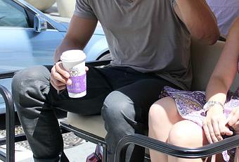 True Blood’s Joe Manganiello enjoyed some coffee, signed autographs for fans and rode in a golf cart at The Grove after an interview for ‘Extra’ in Los Angeles, CA on June 8th, 2012.