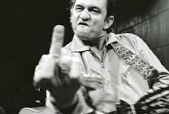 This is my favorite Johnny Cash photograph by the famous rock photographer Jim Marshall. Cash was performing at San Quentin when Marshall suggested that they do a photo showing what Cash thought of the prison authorities. Jim said, “Let’s do one for the warden.” And this is the photo that resulted.