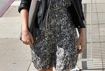 {Julianne Hough Heads to the Salon // Splash News©}Julianne Hough may have just broken up with Ryan Seacrest, but she still looks effortlessly chic in her leather jacket, booties, floral dress and hat. Every girl needs a classic leather jacket in her wardrobe (faux leather works just as well, costs less and doesn’t harm any animals). A leather jacket is a foundation piece because it can be paired with nearly anything across all seasons. Throw on some jewelry or a fabulous hat like Hough and you will look amazing without much effort.