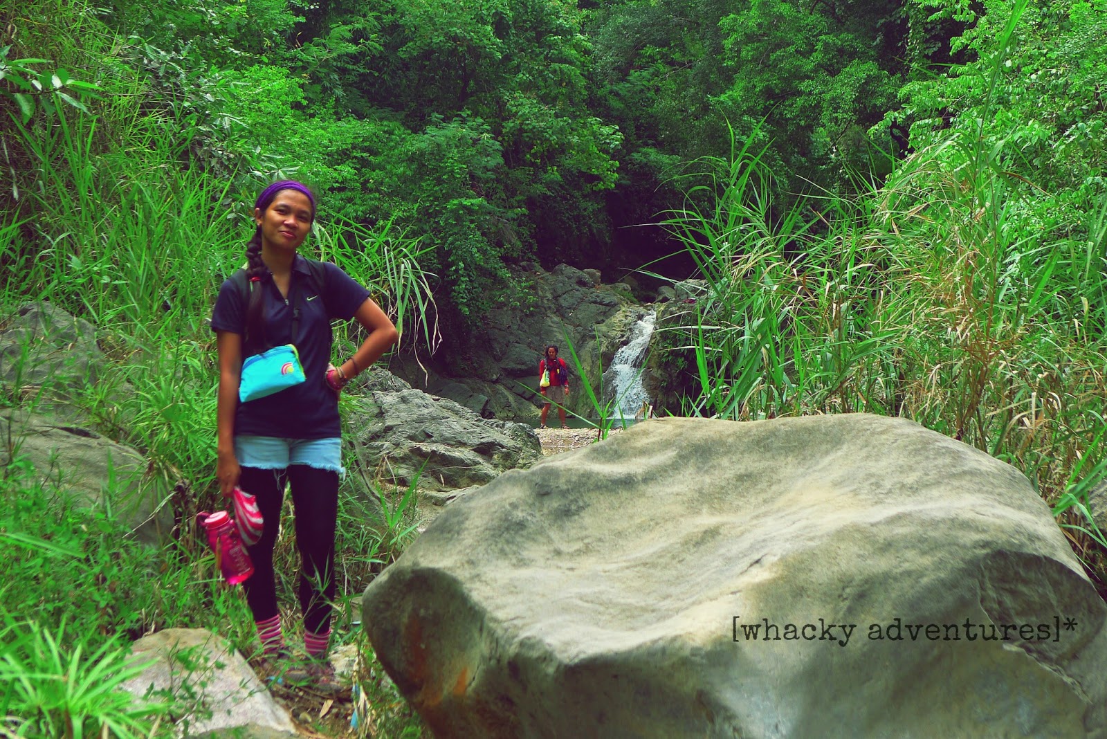 It was a bit gloomy when Bulingit, Abriella, Tabian, Kaye, Jen, Neo, Mark of TripTaBai, Aqui and me started to pave out way through the boulders going to our mid final destination - Kabang Falls. Mid-final because we planned to continue walking until we exit at La Tegola, near Cebu Tops (Cebu's attraction overlooking the city). I could have sworn, I've used up all my ninjitsu (nerd.) trying to wrestle my way over the boulders with Aqui. It was his safety which concerned us the most so we were extra careful in choosing the trail. It was a huge help that I have friends who genuinely cared (cares) about Aqui, though a bit tired themselves. All for the sake of exposing a kid to the outdoors. Hoh! Glad I have uber supportive travel buddies.foreground: Abriella -- background: Bulingit, at a small water drop.