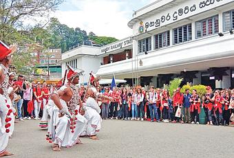 A group of 280 French tourists who arrived in Kandy by the Udarata Menike Express train was received by Kandy Mayor Kesara Senanayake and members of the Kandy Hoteliers Association.Picture shows the tourists being received at the Kandy Railway Station with a performance by traditional Kandyan dancers. Pictures by Asela Kuruluwansa