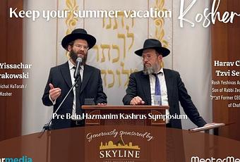 Moderated and arranged by noted mashgichim, Rabbi Zevi Carlebach and Rabbi Dov Kagan, the evening began with divrei brocha and hadracha from the Mara D'asra of Ma'alot Dafna and talmud muvhak of Harav Hagaon Rav Elyashiv Ztz"l, Harav Nachum Eisenstein shlita, who discussed many unknown issues that can arise while vacationing, both in Eretz Yisrael and abroad.
