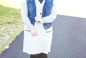 Lately, I am all about comfort; if it's too fancy, I won't wear it. I love taking dressier pieces and making them... not so dressy. I bought this dress for my best friend's bridal shower (I promise I'll show the pics soon, or you can view them all HERE), and I love it, but now that it's cold I need to add layers, and now that I'm boring they have to be casual layers... So I went for my trusty denim jacket and sam edelman petty boots. I love this outfit, it's perfect for these winter days where I'm supposed to look nice, but I'm also not really trying...