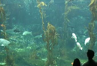 Explore an amazing diversity of fish and invertebrates that make their home within the kelp forest, a crucial ocean ecosystem. The High Definition Kelp Cam lets you take a dive without getting wet. Discover leopard sharks, garibaldi, eels, barracuda, giant sea bass, and more within this two-story, 70,000-gallon tank.
