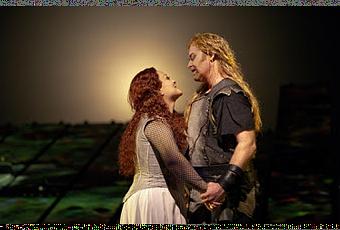 Grounded: Deborah Voigt (left) and Jay Hunter Morris in the final scene of Siegfried.