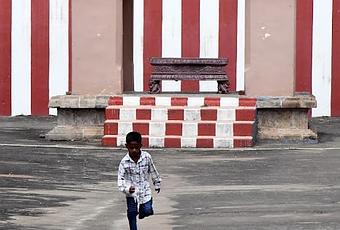 A kid running in the prakaram of beautiful Thirucherai Saranathar temple