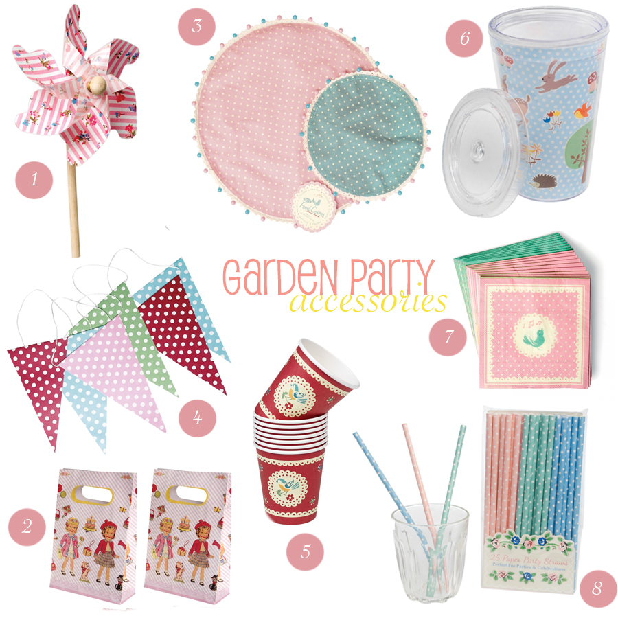 Decorations It's easy to get carried away with decs, I think we'll stick with some pretty bunting, some balloons and some pretty bits scattered around the garden too! Obviously it all depends on the time of year you are looking at having your garden party, if theres a chance of rain don't worry about having to cancel the party, order in an awning or mini marquee or something, you can then take the fun and games indoors after you've all eaten!