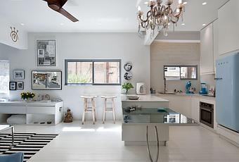 Tel Aviv kitchen with custom dining table and Smeg fridge