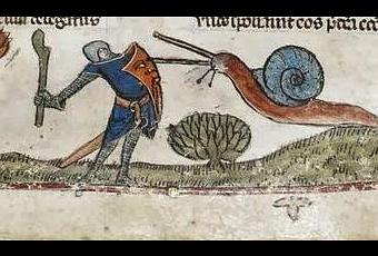 As anyone who is familiar with 13th and 14th century illuminated manuscripts can attest, images of armed knights fighting snails are common. Why is that? What do these images mean?