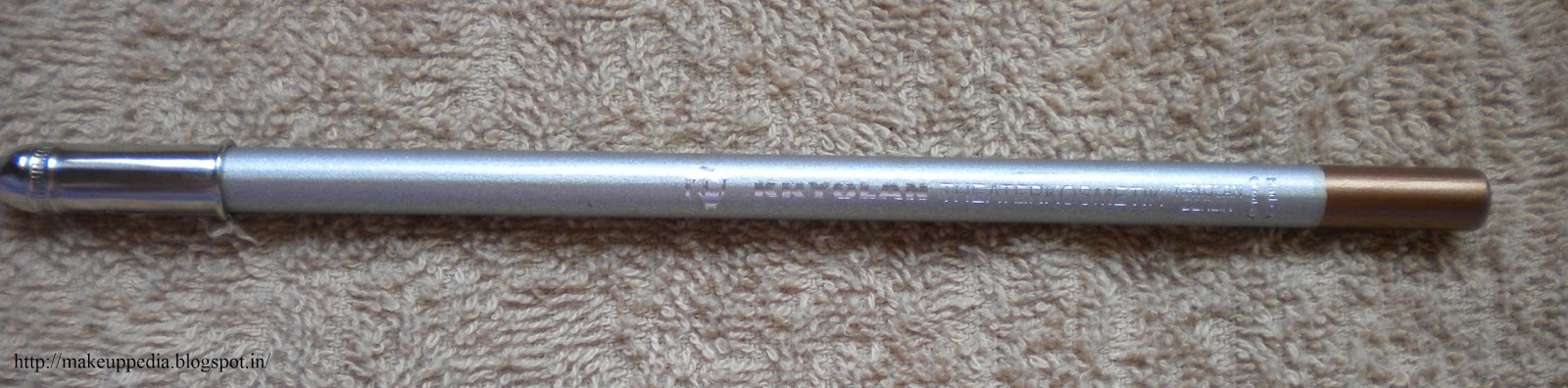 Packaging: It comes in a silver colored body with words engraved in silver. The cap is a small metal one.My take on the product: I had wanted a golden or bronze colored eye pencil and I found just the right thing at Kryolan ( or that’s what I thought ) Since these eye pencils were cheap, and i wanted to experiment a little, I got this one. These were extremely creamy and one of the pencils broke twice while swatching! I was at first amazed at how smooth these were, but little did I realize the difficulty I was going to face! I was both happy that it was creamy and soft but worried about the tip getting crumbled often. So with mixed expectations, i went ahead and applied it on my eyes, and as i feared, the tip crumpled and became blunt.