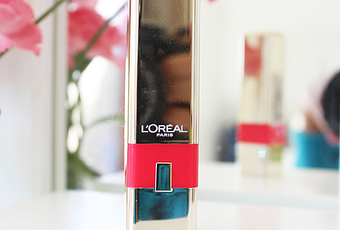In the tube the lipstick is a very rich, glittering, hot pink color. When applied to the lips it was a lot sheerer than I expected. I don't priming my lips with foundation because it can be seen under the sheer lipstick. It is actually quite moisturizing and keeps my lips from getting dry and tight.