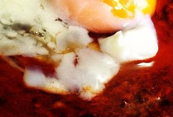 Harissa is a Tunisian hot chili sauce whose main ingredients are piri piri (type of chili pepper), serrano peppers and other hot chili peppers and spices and herbs such as garlic paste, coriander, red chili powder, caraway as well as some vegetable or olive oil. It is most closely associated with Tunisia, Libya and Algeria. La Cloche D’Or make it with a raw egg in the middle that you mix with the Harissa making it taste different.