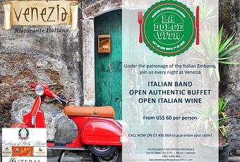 The Italian Culinary week will offer the opportunity to taste Italian food and enjoy music in the soothing Italian ambiance. Authentic Italian dishes will be prepared by the Italian Chef, Paolo Rocco.