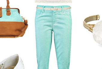 It seems like the possibilities of outfits to pair up with colored denim are endless. But then you get a pair and you’re like, “Errr, what should I wear with these?” and that is when I discovered that having a neutral lacy top on hand makes life easier. It looks simple and fresh, especially in white paired up with aqua skinnies. Today’s Inspiration: Tibi Lace Top ($265.00), Goldsign High-Waist Jeans ($188.00), ASOS Doctor Bag ($78.78), Anne Klein Bloom Flats ($75.00), Style & Co. White Feather Earrings ($20.00), White Agate Cuff ($48.00), Gold + White Druzy Ring from Target ($19.99).